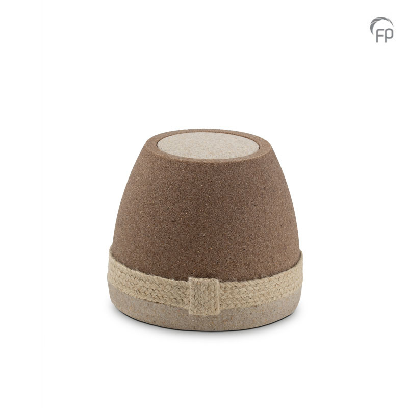 The Dome Samsara urn is made of (quartz) sand and has a burlap band. The urn is sturdy and resistant and is besides a burial on the water also extremely suitable for a regular burial in the earth, due to its raw materials.