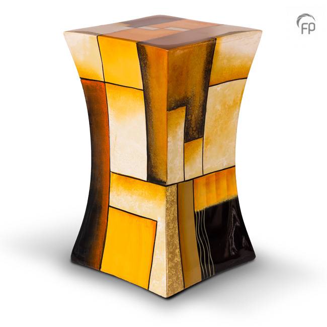The properties of this material make fibreglass urns long-lasting and highly resistant. The basic structure of these urns is made from fibreglass, resin and gypsum to which several layers of varnish  are applied, and finished off with a coat of varnish. The final result is a robust memento in attractive modern colours.