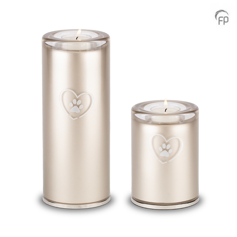 By combining a container for cremated remains with a candle holder you will be able to commemorate your beloved pet in a discrete way. An eternal flame as a symbol of remembrance. The urns are provided with a stainless-steel stopper, which give the product an extra elegant look.